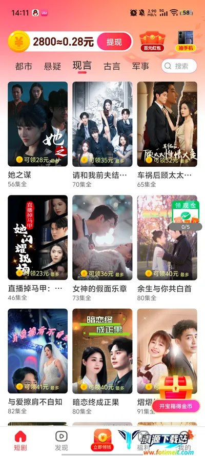 黄金小剧场是个超棒的短视频观看和创作平台,能让你看各种喜剧、悬疑、爱情等类型的精彩短剧。在这平台,你还能上传原创短剧,和大家互动。那黄金小剧场显示提现中啥意思呢?当你在平台通过观看、创作等活动获得收益,申请提现后,界面就会显示提现中。这表示你的提现申请已提交,平台正在处理。它解决了大家把平台收益变现的问题,让辛苦获得的收益能变成实实在在的钱。而且平台操作简单,界面直观,不管是年轻人还是老人小孩都能轻松上手。另外,它还有海量短剧资源、智能推荐、离线下载等功能,非常便利,让你既能享受观看乐趣,又能有收益,何乐而不为呢?