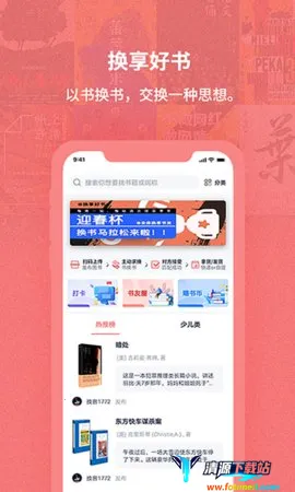 换享以物换物是一款深受喜爱的换书软件,提供以书换书服务。支持扫码上传闲置书,精准匹配书友,还有打卡签到、热推榜等功能,书友圈方便交流心得,让阅读更有趣,轻松解决书荒。