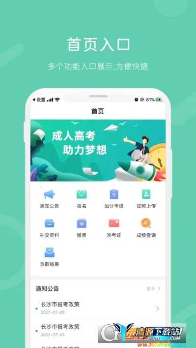 1、信息全面:涵盖招生、考试、院校介绍、成绩查询、网上申请等一系列内容,提供详细的成人高考资讯信息和相关政策,最新动态能第一时间通知,让考生轻松了解整个考试过程。