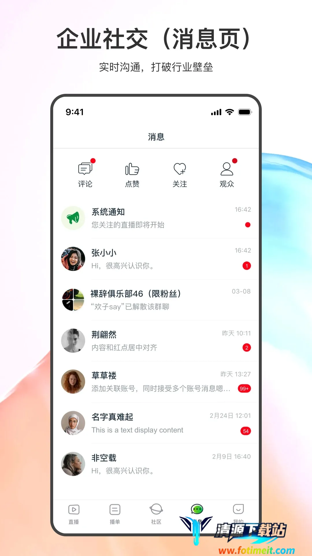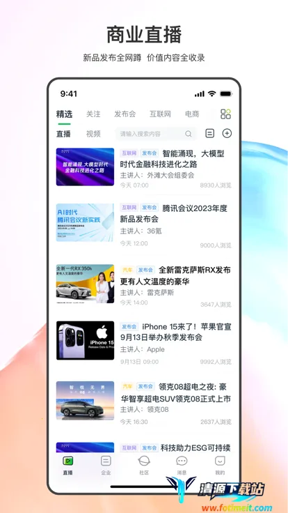 晓络全新版本带来诸多亮点。**直播发布**可站内直接发,促进流量渗透,迅速帮企业及产品获客。这里是万千职业白领精英聚集地,真实企业组织互联,关注互粉后能一键发起会话,交流畅谈无阻。**直播日历**能关注感兴趣直播并加入播单,会前即时提醒,精彩不会错过。**直播广场**全网汇聚企业最新动态直播,助您把握最新行业动态。