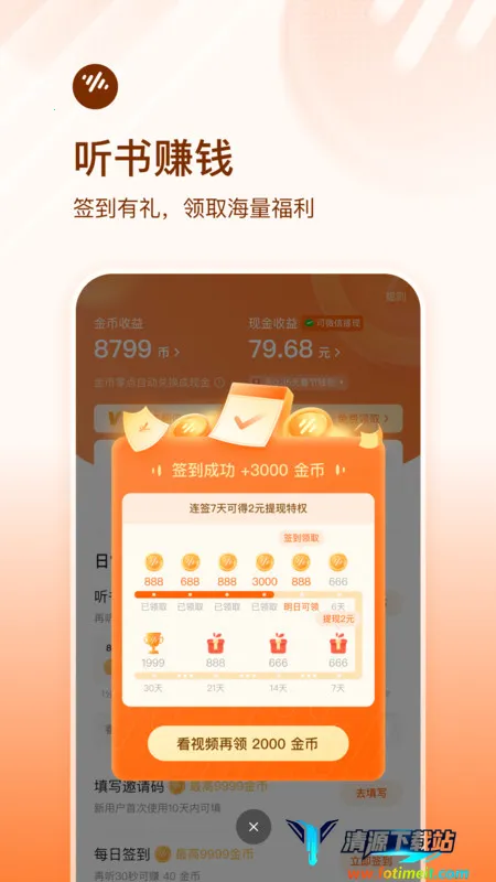 3. 多种赚钱方式:支持听书赚现金,新人有大红包,签到、开宝箱等赚钱方式多样,红包福利应有尽有,还能随时提现。