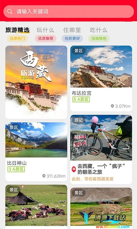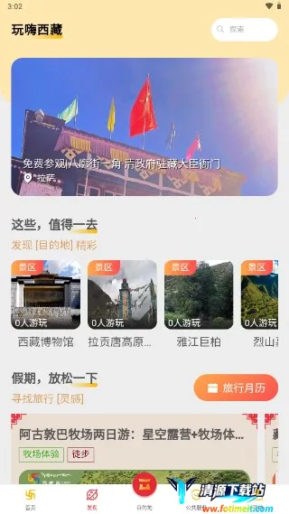 如果你想知道西藏游玩大概多少钱,西藏游app能帮到你。它能为你带来一站式旅游服务,让你清晰了解西藏地区各大景点和文化知识,提前做好计划。软件特色丰富,行程规划智能又有高级人工服务,能迅速完成设计。景区门票实时在售,注册分享或邀好友可享优惠。还能随手分享见闻,留下自驾游记,也能查看他人游记并一键导航。真实采集的自驾路程,足不出户体验丰富旅途。这里是美图聚集地,还有360全景带来真实感受。使用时在本站下载安装,登录后能看到首页、发现、目的地、我的四个板块,涵盖旅游精品路线、周边活动、景点酒店、美食等多种功能,能帮你全面了解西藏,规划一场满意的旅行,轻松知晓游玩花费大概情况,快来试试吧。