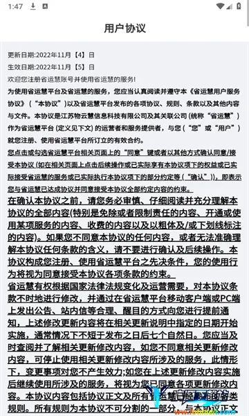 如果你想知道省运慧物流是否正规,那它的这款App或许能给你答案。省运慧App是一款功能强大的物流软件。它有智能发货功能,货主能快速精准找专线资源对接物流商,提升发货效率。提供一站式安全高效配送服务,严格筛选合作企业,保障货物运输。拥有覆盖全国的专业物流网络,整合数千条精准专线,降低成本提高效率。还能提供个性化物流解决方案。使用场景丰富,大宗货物运输、零散物品配送以及物流企业管理都适用。下载安装方便,注册登录简单。发布货源、查找专线、运单管理、在线支付等操作都很便捷。自上线受广大用户好评,能全方位满足物流需求,从多方面保障物流运输正规可靠,不妨来本站下载体验一下,让你对省运慧物流的正规性有更直观感受。