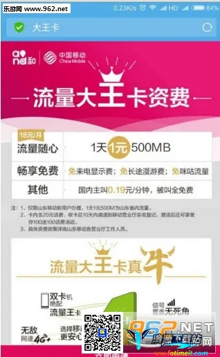 移动大王卡19元套餐超划算!它能让你任性用流量,尽情体验飞速网络,特别适合常出差的人。配合移动大王卡app使用,功能超强大。能精准管理流量,权威统计流量,还有流量余额预警与直充,各类流量包加油包随时可订购,消费明白直观。支持多种充值方式,主流支付方式都能用,还有优惠折扣。能轻松办理4G套餐、流量包等业务,畅游移动商城选购时尚终端配件。有专属特色应用,如宽带专区、电子发票、在线客服等。还能实时查询流量、语音、短信、积分、话费等信息,便捷订购各种业务。查询通话记录和退订套餐也很方便。总之,移动大王卡19元套餐及相关app,为你提供全方位便捷通信服务,让你的用网生活更轻松!