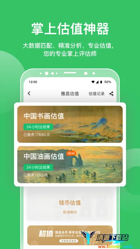 雅昌拍卖图录app能帮你解决对拍卖图录成交记录真实性的疑问。它是一款超棒的线上拍卖平台,由多方联合推荐,安全有保障。这里有海量书画古玩等艺术品,能一键搜索藏品。它集合了1993年至今二十多年的拍卖数据,提供多维度查询、指数分析、估值工具等服务。其亮点众多,海量拍卖数据汇聚了大量成交记录,藏友交流社区可随时互动,书画估值神器能上传图片得精准估值,还有交易历史记录助你判断价格。拍品多图可放大200查看细节,专属我的图录方便管理。功能强大便捷,能查看预展信息、多维度搜索筛选。有了它,你能轻松了解艺术品拍卖详情,准确判断成交记录真实性,无论是收藏还是投资都更有把握,赶快下载体验吧!