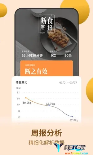 怪瘦轻断食亮点多多。它能量身打造断食计划,全面追踪断食情况,有周报详情分析,还可追踪减重与断食状态。其科学食谱专属定制,能跟踪断食历史和图表记录,配合锻炼版块助力更快瘦身。提供丰富食谱,能记录饮食,自动分析数据并给建议。还能建立社区分享经验,智能提醒进餐,设立奖励机制。根据个人情况定制专属减肥任务和饮食计划,推荐个性化营养摄入数据,自定义热量摄入等,让减肥更科学、美味又轻松。