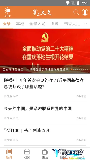 掌上大足app能满足你了解本地最新动态的需求。它是大足地区居民的新闻资讯好帮手,能让你足不出户知晓周边大小事。这里有原汁原味的本地信息浏览体验,支持登录报料。特色内容定期更新,第一时间传递本地热点新闻,全力打造权威的新闻及生活资讯服务平台。它提供各类精彩视频栏目,让你目不暇接;还有本地商家打折优惠信息,涵盖众多联盟商家。能随时随地获取大足新闻资讯报道和活动信息,支持即时分享。提供吃住行玩等各方面本地便捷服务信息,你还能自由选择新闻栏目,精准获取相关新闻推送。通过天气展示板块了解当地天气,借助丰富便民服务便利生活,更有图片影像等资源助你深入了解当地风景。有了它,你就能及时掌握大足的各类信息啦。