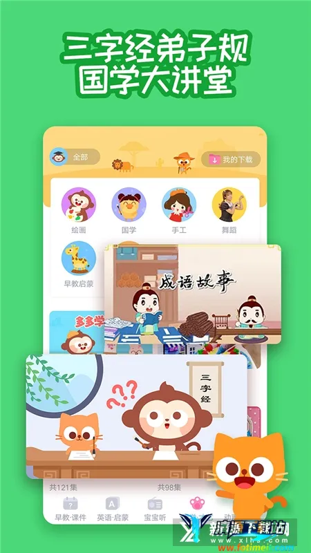 多多早教涵盖幼儿早教儿歌和动画故事学本领。其课程丰富多样,有海量早教课程,涵盖数学、英语、汉字、舞蹈、绘画等,且均为卡通形式,能培养孩子学习兴趣。