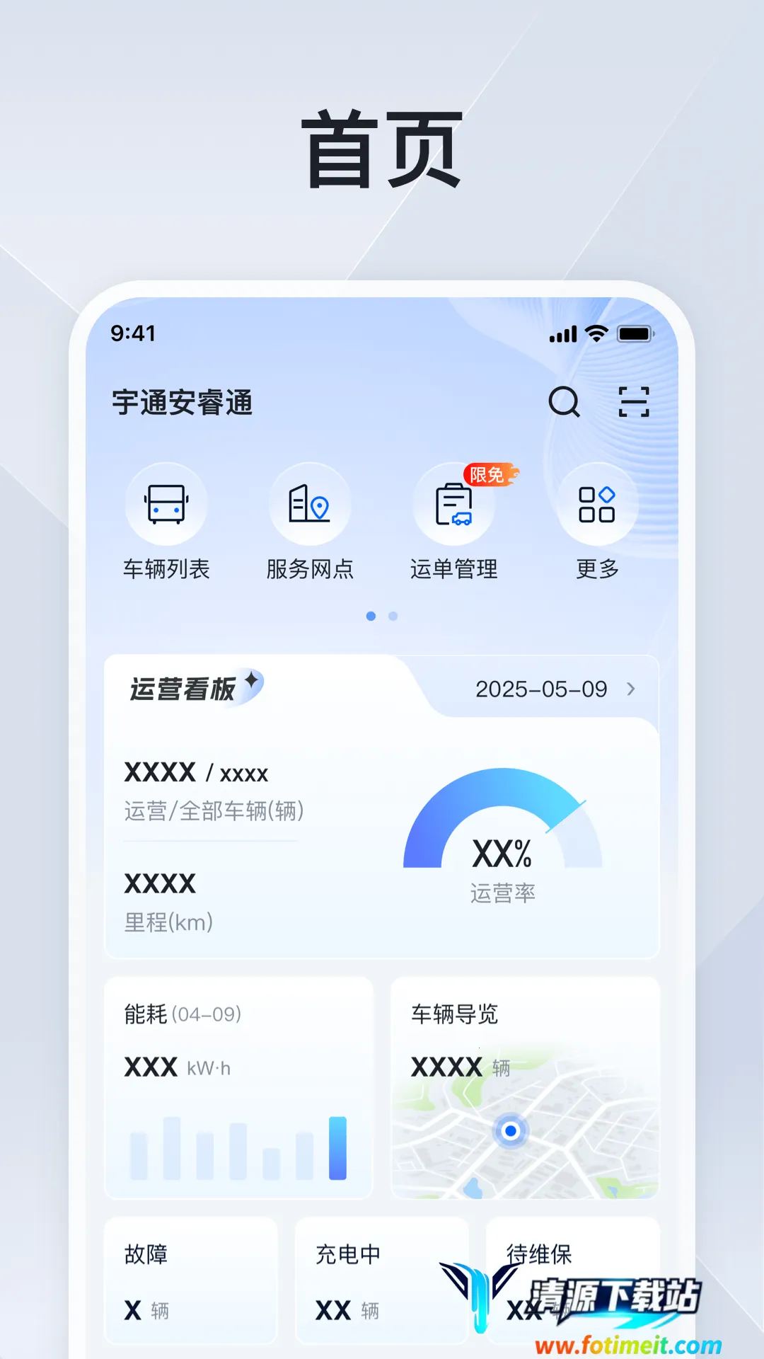 2. 数据全面:能实时查看车辆日常能耗、部件损耗等信息,还可统计汽车的所有运营数据,实现可视化,助用户全面了解车辆状况。