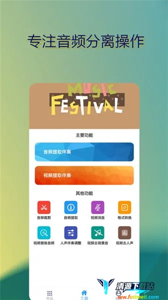 1. 功能丰富多样:它集音频伴奏提取、视频伴奏提取、音频裁剪、音频提取、视频去人声、音频格式转换、视频替换音频、视频去背景音、人声伴奏调整等众多功能于一体,能满足用户各种音频处理需求。