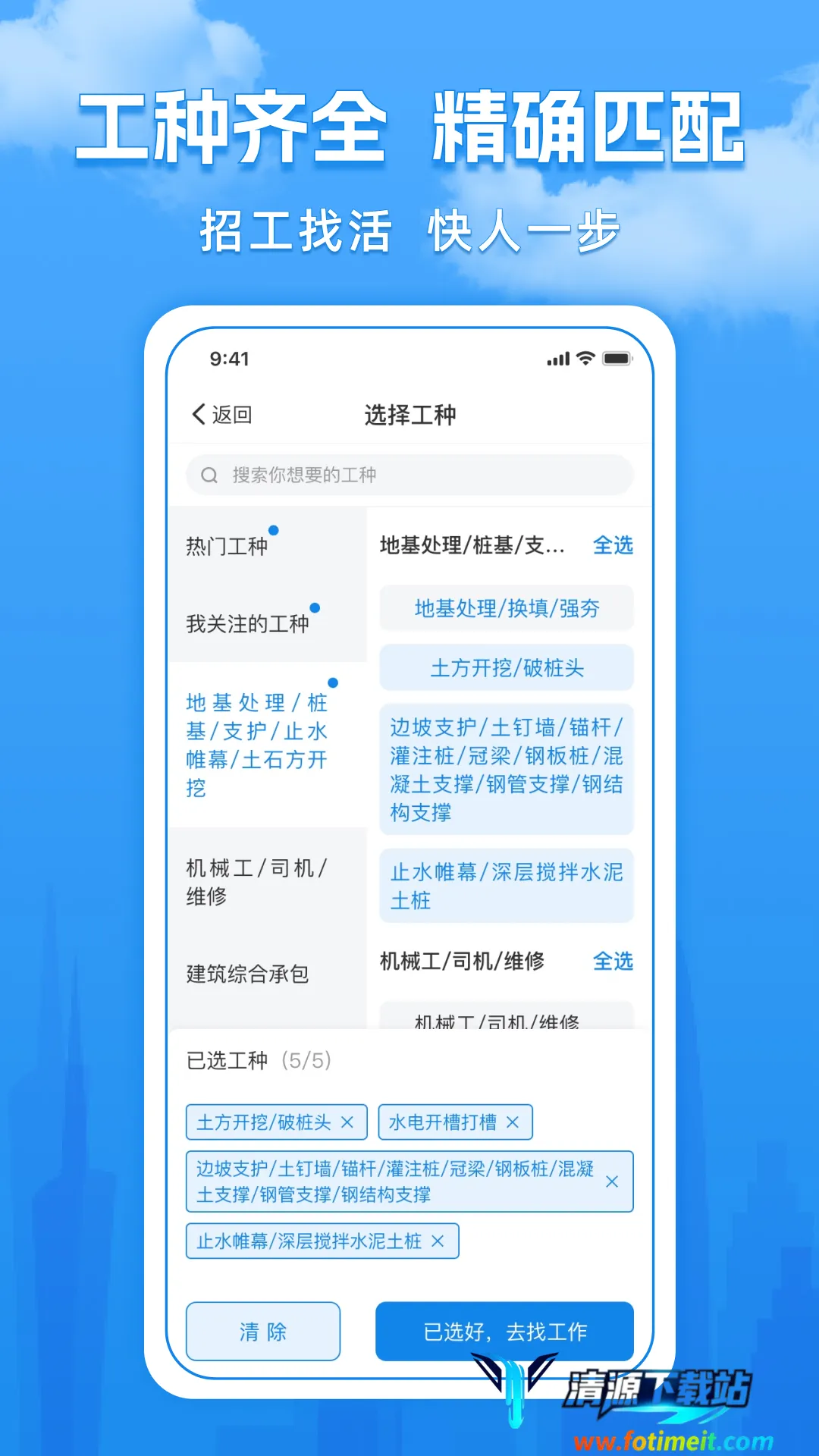 1. 工种多样,能针对工程建造行业用工特点,提供灵活用工匹配服务,快速为岗位找到合适人才。