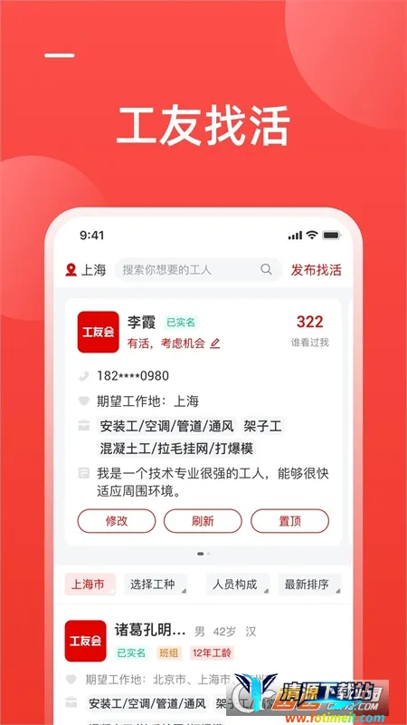 4. 专注建筑行业招聘,班组、个人企业均可免费发布招聘信息,经实名认证就能展示。