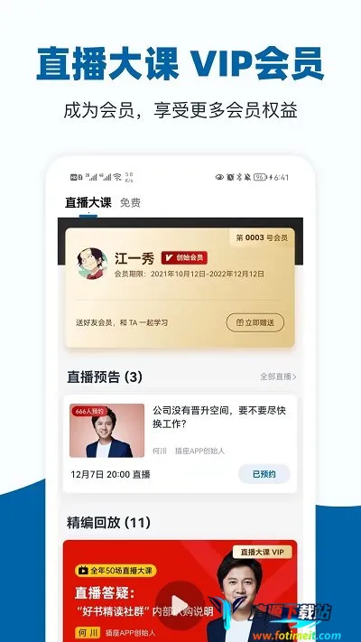 4. 功能多样:有开屏日签可保存本地和分享,能记录课程进度,还有赚学费途径、读书摘抄等,更有实时推送当天直播课程,提供报名到点通知服务,可随时随地随堂测验。