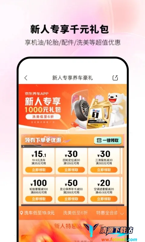 :仅需6.18元即可享受六大养车特权及月度限定特惠,每月刷新,为车主提供更多增值服务。新人还有专享礼包和优惠,如洗车低至25元,机油保养套餐最高立减100元,轮胎套餐最高立减200元等。-