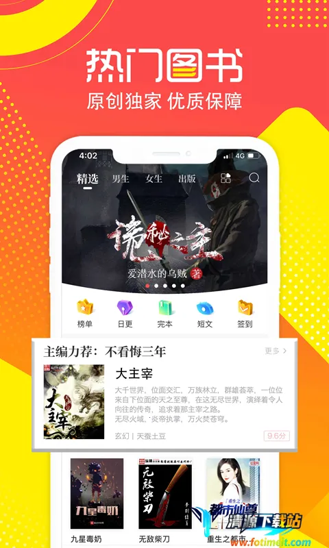 3. 阅读体验超畅快:提供畅快淋漓的阅读感受,支持秒速追更,还有离线缓存、WIFI 传书、夜间模式等贴心功能。精美的排版,长时间阅读也不累,给你极致的阅读享受。