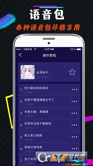 3. **海量语音包资源**:内置丰富语音包,包含台湾妹子系列、游戏开黑专用语音包及社交软件适配语音包等,为沟通增添更多趣味。
