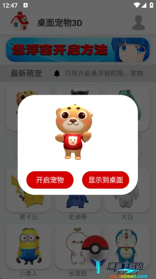 桌面宠物3D 2026最新版本带来诸多卡通可爱桌面宠物,适配不同手机型号,免费下载。内存小不影响运行,可自由调整宠物位置、大小,还有互动功能、悬浮窗开启,无广告植入,能打造个性化桌面。