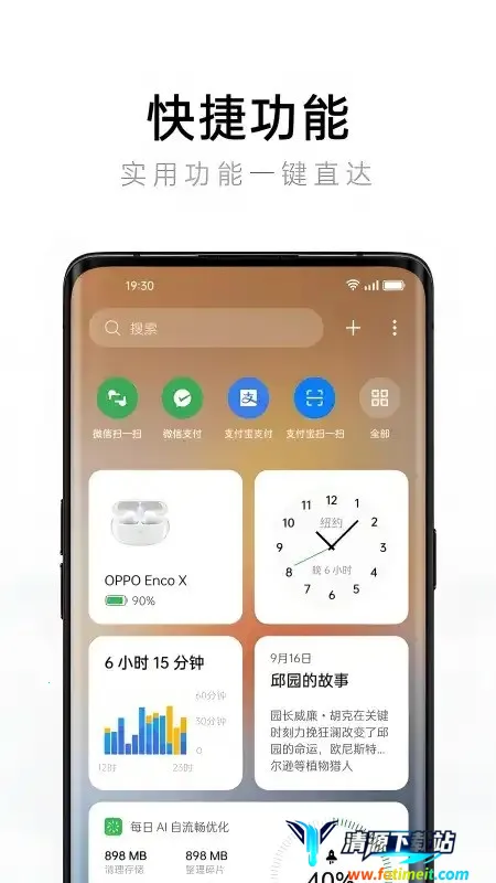 OPPO 速览是 OPPO 手机内置的智能快捷键软件,功能全面,涵盖工作生活多方面。支持快速获取信息、调用常用功能,有快递追踪、运动计步等特色功能,界面小巧美观,各区域卡片显示直观。