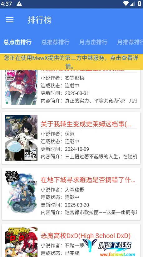 轻小说文库 Android 项目主页可是轻小说爱好者的宝藏之地!这里有超多轻小说资源,各种类型应有尽有。无论你喜欢玄幻、都市、言情还是武侠等,都能轻松找到。它能解决你苦苦寻觅小说资源的难题,让你不再为找不到喜欢的轻小说而烦恼。