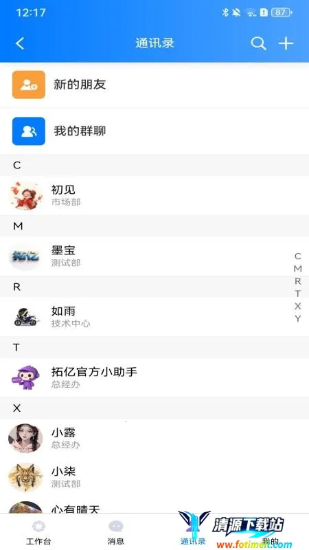 如果你是拓亿新材料(广州)有限公司的员工,或者与该公司有业务往来,那你一定需要一款高效的办公软件来提升工作效率。拓亿 APP 就是这样一款专注企业打造的移动端协作办公软件。它能实现考勤、审批、汇报、日程、文件和会议等多样管理,让你不用线下见面就能轻松完成诸多任务,降低企业经营和管理成本。支持文字、语音、图片、视频等多种消息类型,端到端加密保障数据安全。有考勤打卡记录出勤,在线审批轻松完成申请与审批,日程管理一目了然,在线汇报方便记录工作,企业通讯随时与同事互动,会议管理一键开启会议。诸多实用办公功能,一站式满足你的办公需求,告别繁琐传统模式,快来本站下载拓亿 APP 手机版,让工作更智能化、高效化!