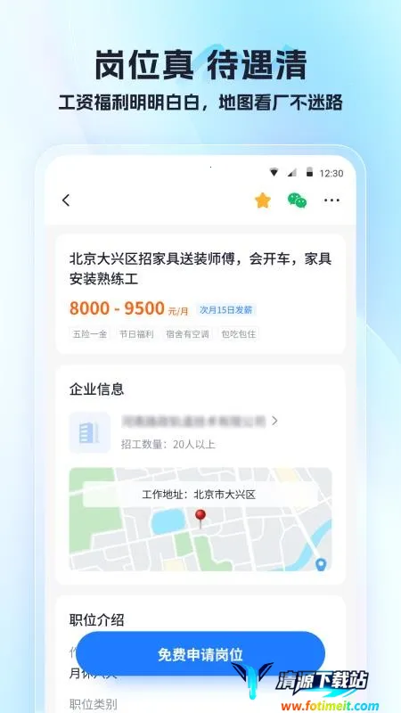可筛选真实有效的岗位,清晰查看岗位待遇,让您求职无忧。您还能免费申请心仪岗位,快速找到自己喜欢的工作。
