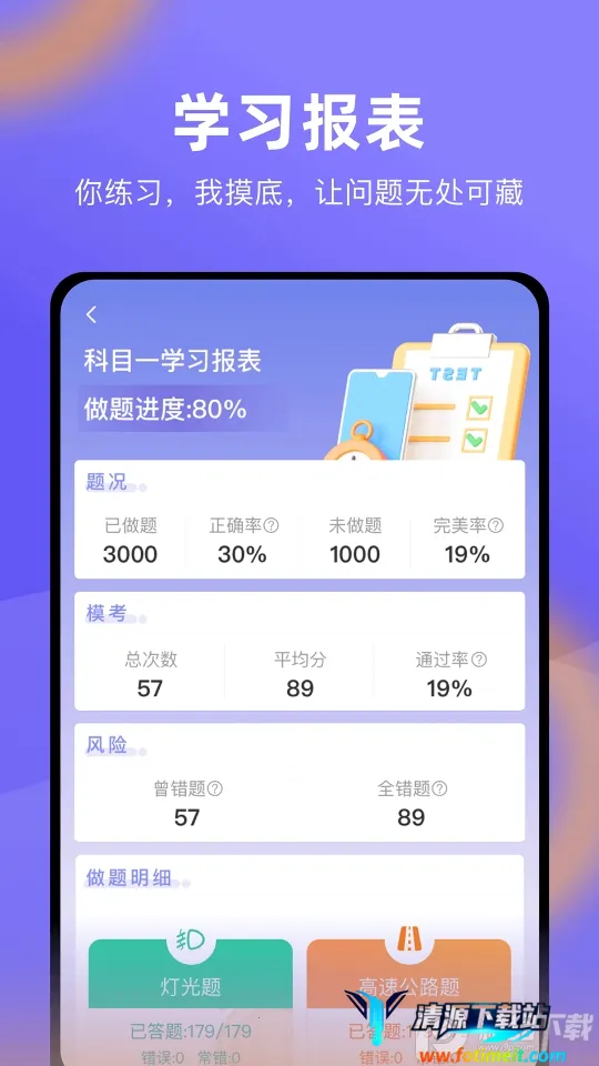 3、智能学习辅助:会自动收录做错的驾考题目,提供答题技巧解析,方便学员针对性复习。支持学员重复训练弱项,专训某一驾考项目,有效提高培训质量,大大提升驾考通过率。