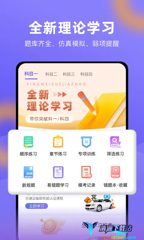 2、海量优质题库:拥有庞大且全面丰富的驾考题库,从科目一至科目四精心整理驾考知识要点,题目附带详细解析,方便学员理解考点难点。而且题库每日更新,让学员实时掌握更多考题,更好地备考。