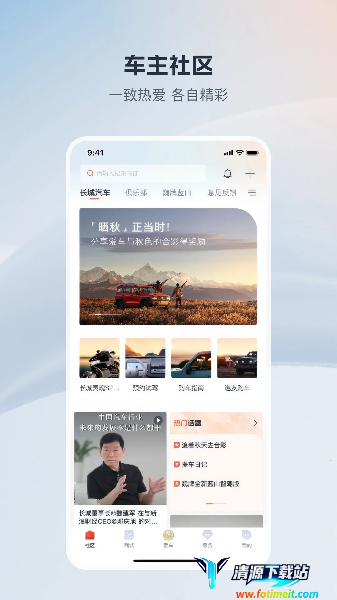 长城汽车App亮点众多。它是综合服务平台,集购车、用车、养车于一体,满足不同阶段需求。车控性能提升,操作流畅稳定。购车流程简便,车型权益清晰。商品种类丰富,五品牌商品任你挑选。信息全面及时,提供最新资讯。服务省心省事,整合资源便捷高效。跨品牌车控打破界限,多品牌车主操控更便捷。个性化内容推荐精准,一站式养车用车全场景搞定。多品牌聚合,无需切换APP。车友互动社区热闹,积分互通实用,让你轻松享受汽车生活。