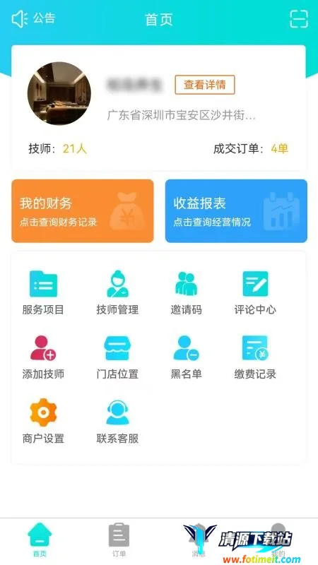 4. 自动统计:对技师动态、订单信息、收益等数据进行统计,商家能轻松通过平台快速查看,及时掌握店铺经营状况。