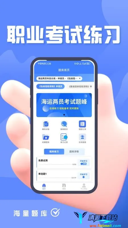 1. 海量题库:提供大量海运考题知识,让用户随时在线综合刷题测试,全面覆盖主要考点,助您熟悉各类题型。