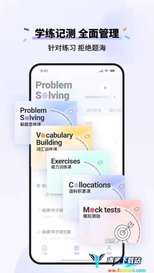 2、个性化学习路径:依据用户设定的目标分数和考试时间,自动规划每日学习任务,循序渐进推进备考。