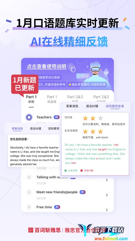 1、提供系统化训练:围绕雅思听说读写四大板块,打造系统化训练内容,助力学习者全面提升。