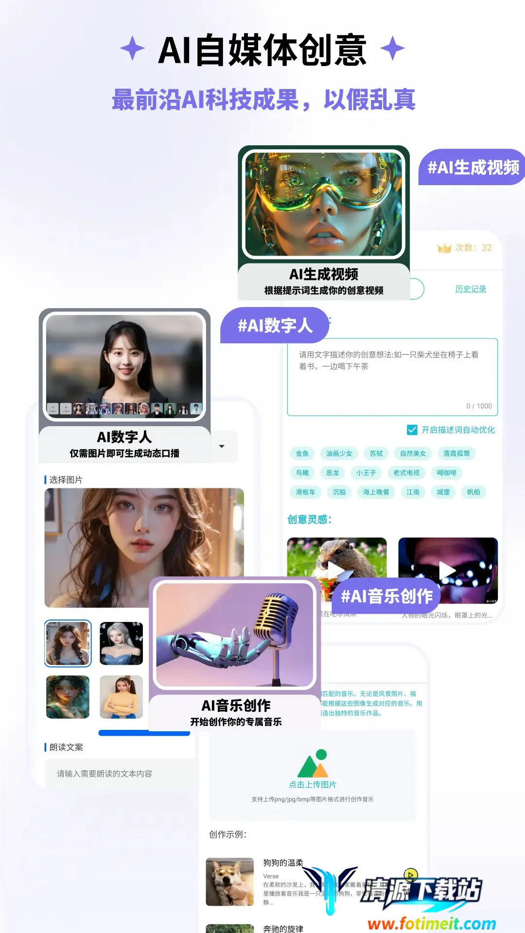 1. 支持AI语音合成和音乐创作等功能,帮助用户在不同场景下实现创意输出,适合短视频创作者。