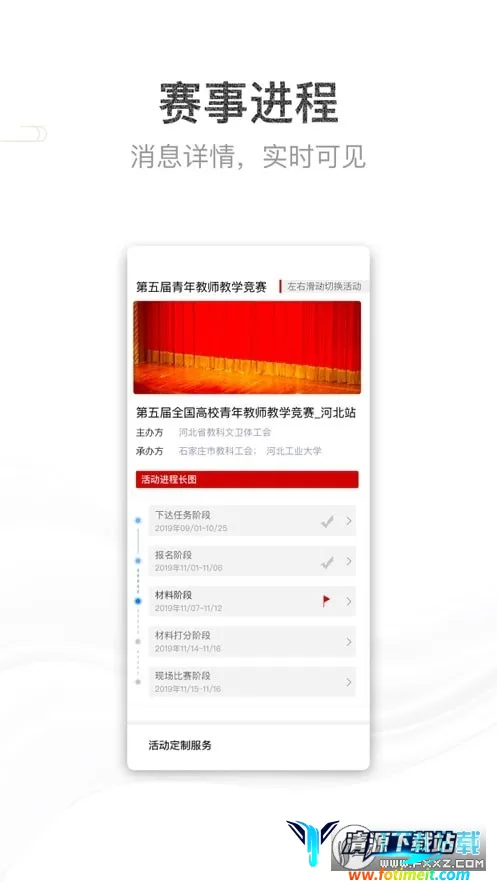 青教赛app是全国中小学青年教师教学竞赛移动服务平台,有赛事总览、报名、直播等功能,能助力中小学教育发展。提供往届视频等资源,注重信息更新分享,支持多种教学模式,方便教师参与竞赛、组织教学及监测学生情况。