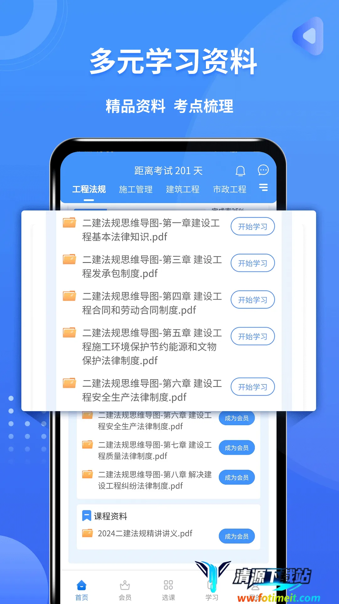 1. 丰富学习资源:提供全面系统的复习资料,涵盖各科目知识点总结、历年真题解析以及模拟考试等,还有二建考试大纲重难点、教材变化解读、各科目知识点视频讲解,助您自学无忧。