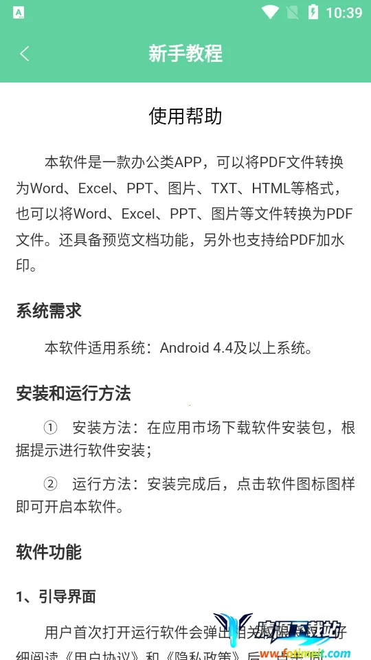 实际使用体验中,它在日常办公与文档处理方面表现出色。当需要把PDF文件转换成其他格式时,特别便捷。界面设计直观,流程清晰,即便办公新手也不容易出错。其操作简单易上手,无需复杂设置或流程,新手用户也能快速完成格式转换。而且适配安卓设备使用场景,在手机上就能完成PDF文件转换,无需借助电脑。应用体积轻巧且界面简洁,没有繁琐功能堆叠,能让用户专注完成文件转换任务。总体而言,在处理PDF文件转换等办公需求时,它是一款实用的工具。