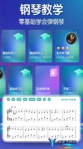 3、专业教学:提供从零基础进阶到高级弹奏技巧的专业课程,通俗易懂,为钢琴学习奠定坚实基础。