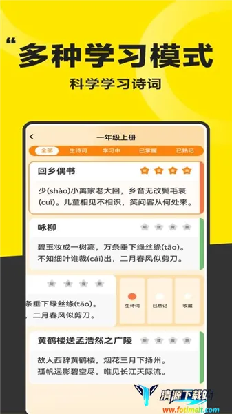 4. 多种学习模式可选:包含多种多样的学习模式,能有效激发孩子学习诗词的兴趣,满足不同需求。