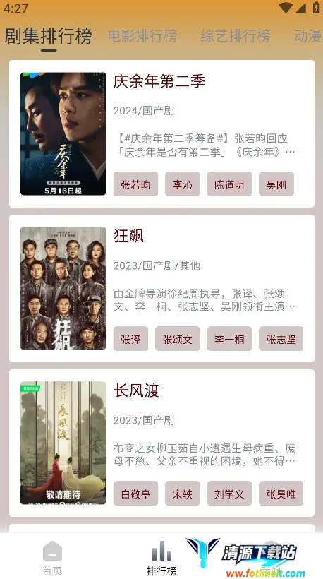 该软件涵盖多种影视类型,资源实时更新,可在线播放、离线缓存,还有智能查找、热门推荐、视频收藏等功能。其亮点包括全网资源聚合搜索、离线缓存、轻松切换清晰度、本地视频一键扫描播放等。此外,它还支持投屏,操作简单。