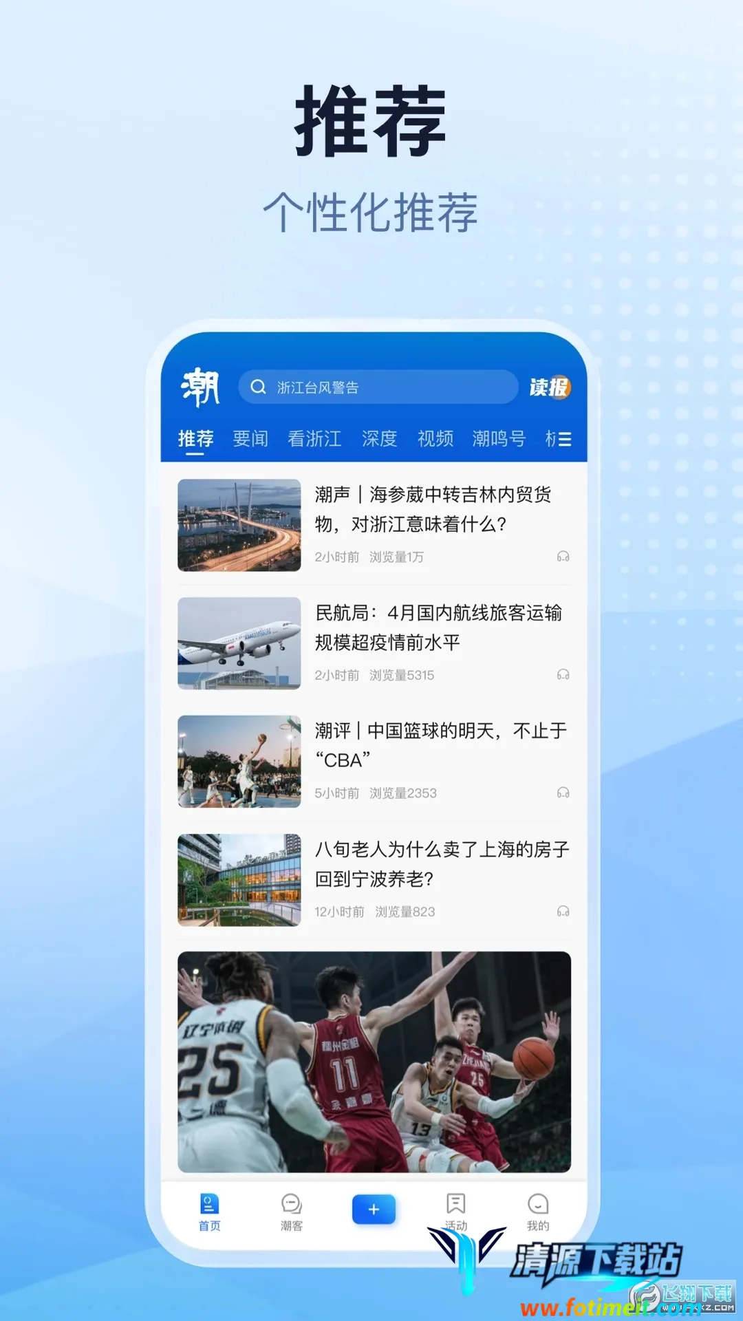 潮新闻是一款媒体融合的新闻传播软件。它能提供海量新闻资讯,国内外内容实时呈现。划分八大频道,像天评、天闻等,方便用户浏览。有直播观看功能,能在线看实时直播视频;一键关注功能,可实时获取关注动态;频道选择服务,多个新闻频道自由选;舆情热议功能,能和网友评论时事;精选推荐服务,专业编辑推荐精选资讯;还有生活服务功能,为浙江地区用户提供便捷生活服务,比如天气预报、空气质量、实时台风消息等,能帮你规划行程。它依托浙报集团媒体资源,内容专业有深度。界面设计简洁,操作流畅。在这里,你能全面了解新闻热点,满足获取资讯需求,还能参与互动讨论,是获取新闻和交流的好平台。