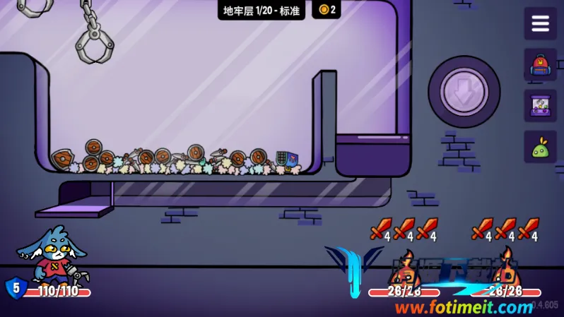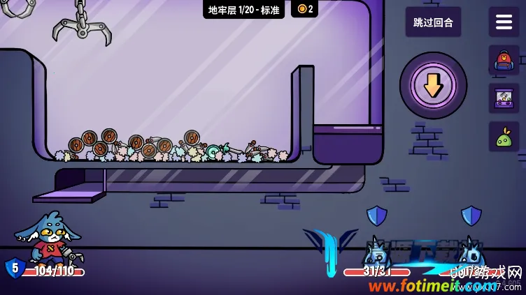 游戏里,玩家用钩爪抓道具和敌人,回合制玩法,每回合有两次抓取机会,之后敌人攻击,回合结束道具栏自动补满。道具分普通和金色,类型多样。