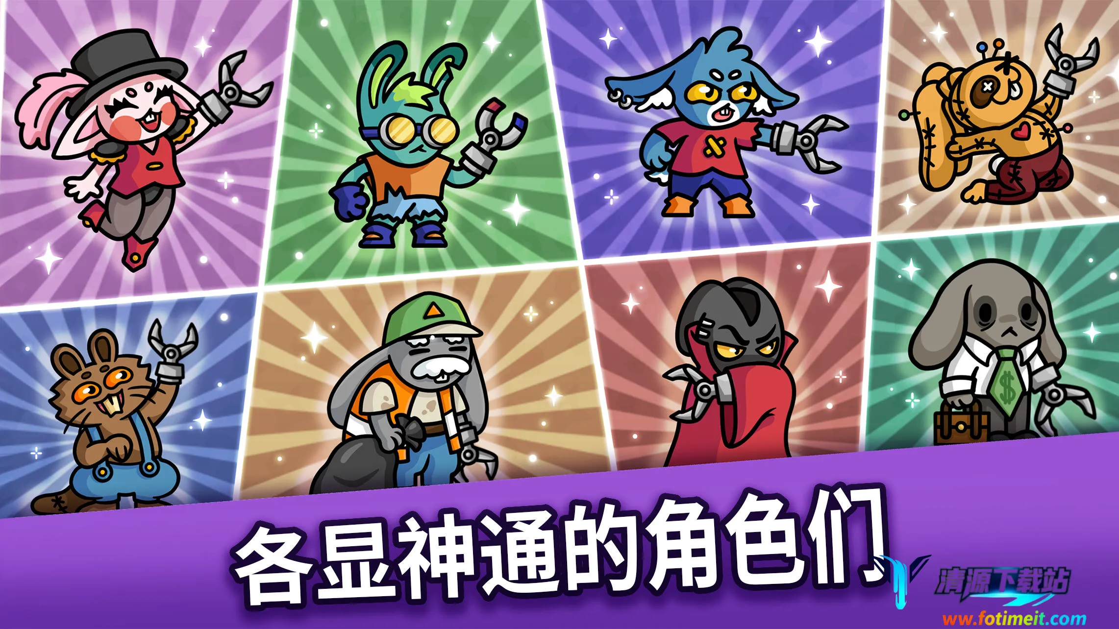 2. 角色独具特色,每个角色抓道具时都有独特能力,玩家可挑选7种角色,组合强大团队对抗对手。
