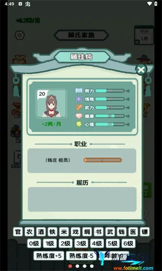 操作简单,点击就行。美术是古风设计,界面简洁中文易上手。它涵盖结婚生子、经商习武等模拟内容,低内存设定无设备压力,还有舒缓背景音乐。无论你想当皇帝还是富商,它都能满足,快来开启属于你的古代人生吧!