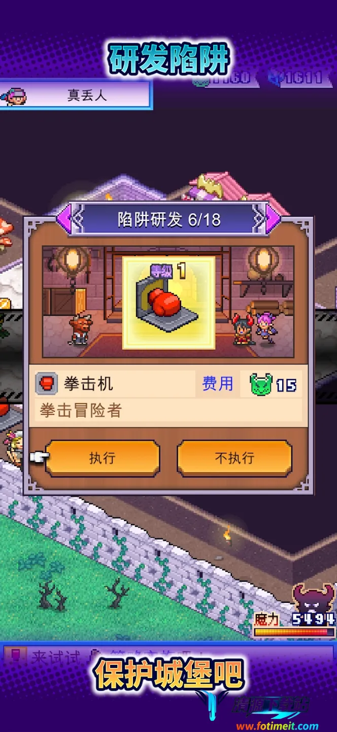 你可以自由布局城堡,铺设各种致命陷阱,比如催眠毒气、旋转刀刃啥的。还能用50余种魔物组建防御军团,像哥布林战士负责前排,幽灵弓箭手提供输出,史莱姆医师提升续航。通过投喂食物、战斗历练提升魔物等级,部分魔物还能合成进化。四季交替会影响陷阱效果,得提前调整布局。