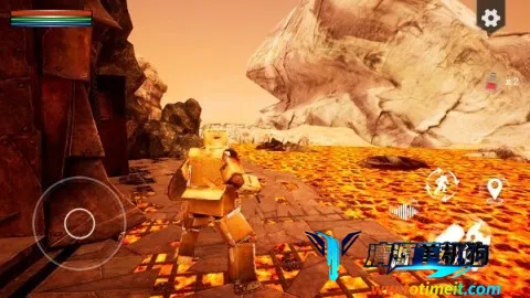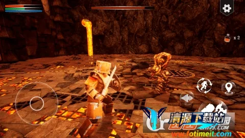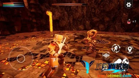 3. 操作简单:启动游戏后,点击右上方橙色按钮开启冒险。根据任务提示,滑动摇杆靠近守卫者对话。进入操作界面,利用摇杆控制角色移动,通过右下方按钮进行攻击、使用道具等操作。