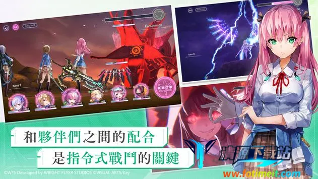 游戏的画面精致,角色声优阵容强大,超过50位独特角色由华丽的声优团队倾情演绎,带来丰富的视听体验。战斗采用经典的回合制模式,出战人数最多六人,分为前卫三人和后卫三人,后卫在战斗中不能行动也不会受到伤害。每个回合前,玩家可以自由选择角色位置进行调换。