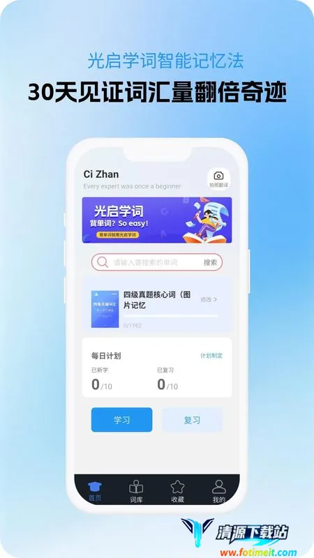 光启学词专为四六级考生打造,可查单词拆解与用法,有真实语境短语。支持番茄学习法,功能丰富,如超快查询、英文朗读、背诵比赛等。亮点众多,免费无弹窗,依遗忘曲线定计划,助你高效学词。