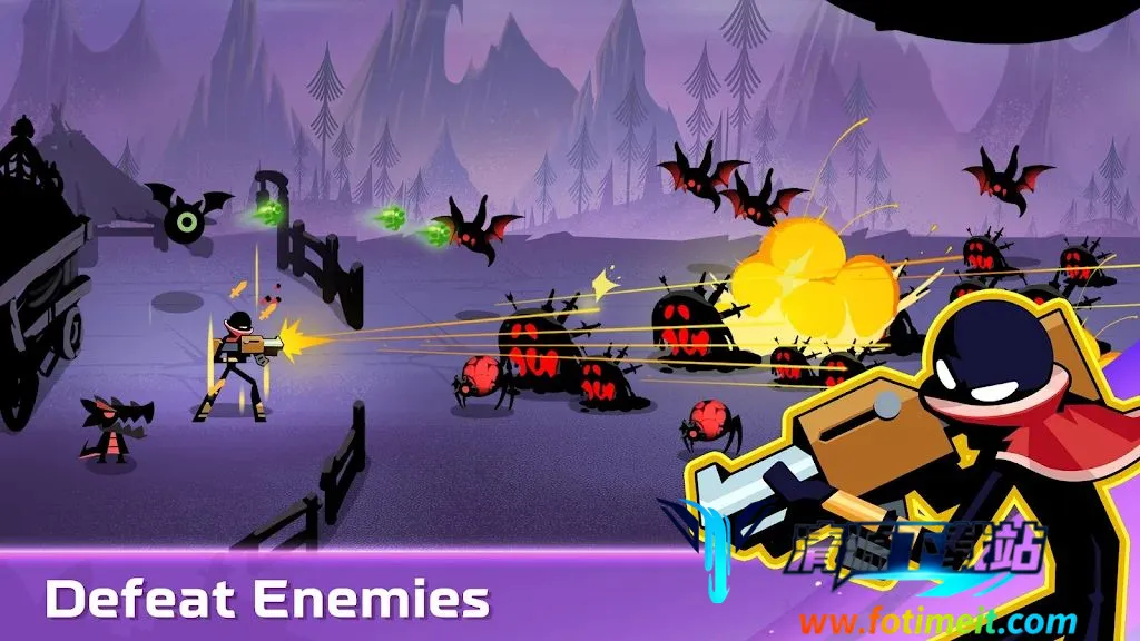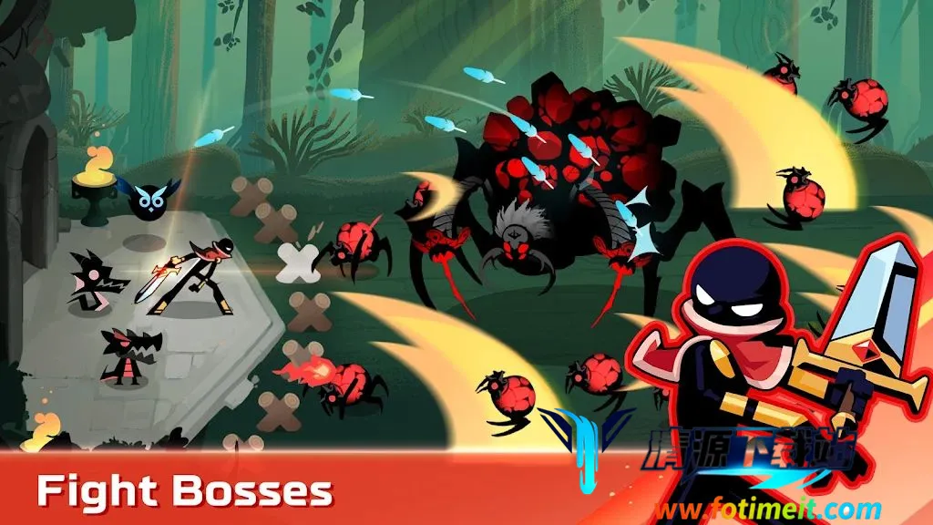 2. 丰富的装备选择:有数百种致命武器,像弩、武士刀、长矛等,能尝试所有武器并依任务调整武器库,还可为火柴人配备强大武器、盔甲和配件,召唤伙伴支持战斗。