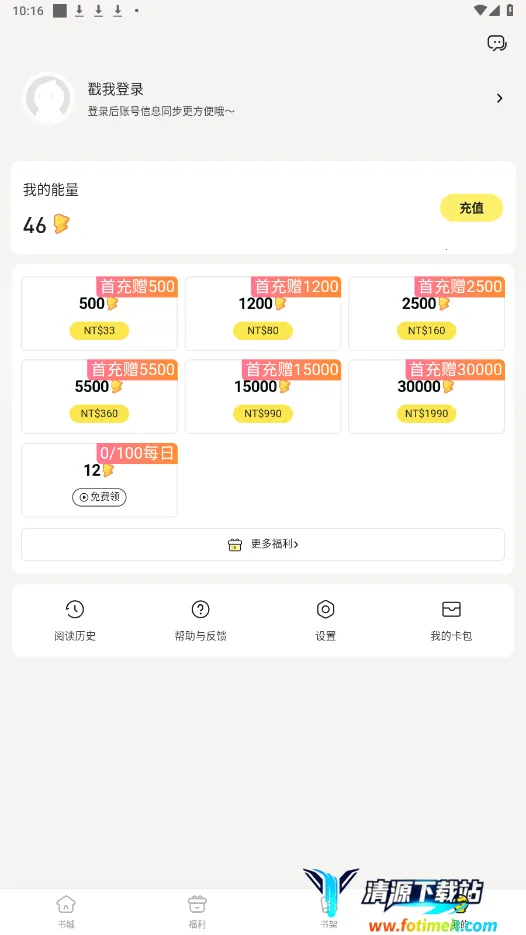 打开游戏,进入书城界面后,点击福利