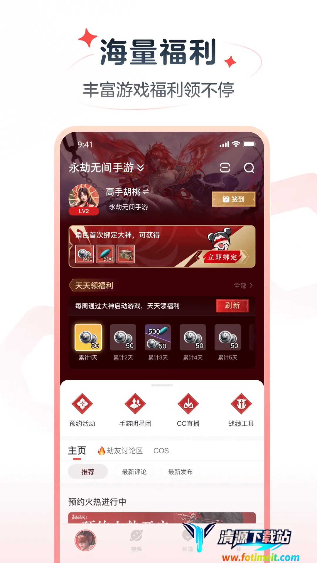 2. 丰富福利轻松可得:能领取独家游戏福利,每日签到可领取奖励,各类道具随机掉落,绑定游戏账号还有专属特权与状态加成,福利拿到手软。